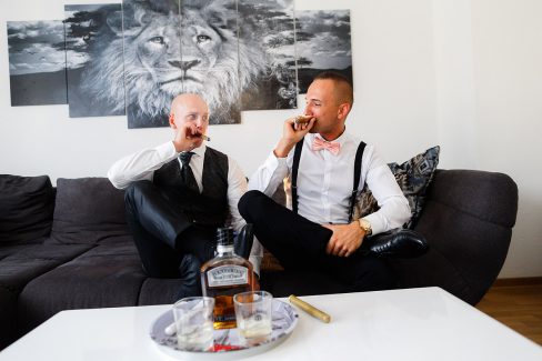Vorbereitungen der Braut und des Bräutigams, Getting Ready vor der Trauung